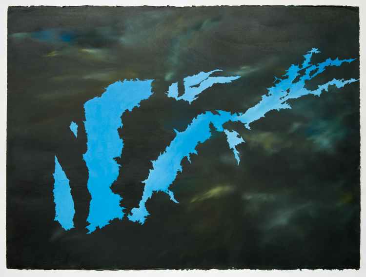 Shadows of an old storm; 22″ x 30″, oil and wax on paper.