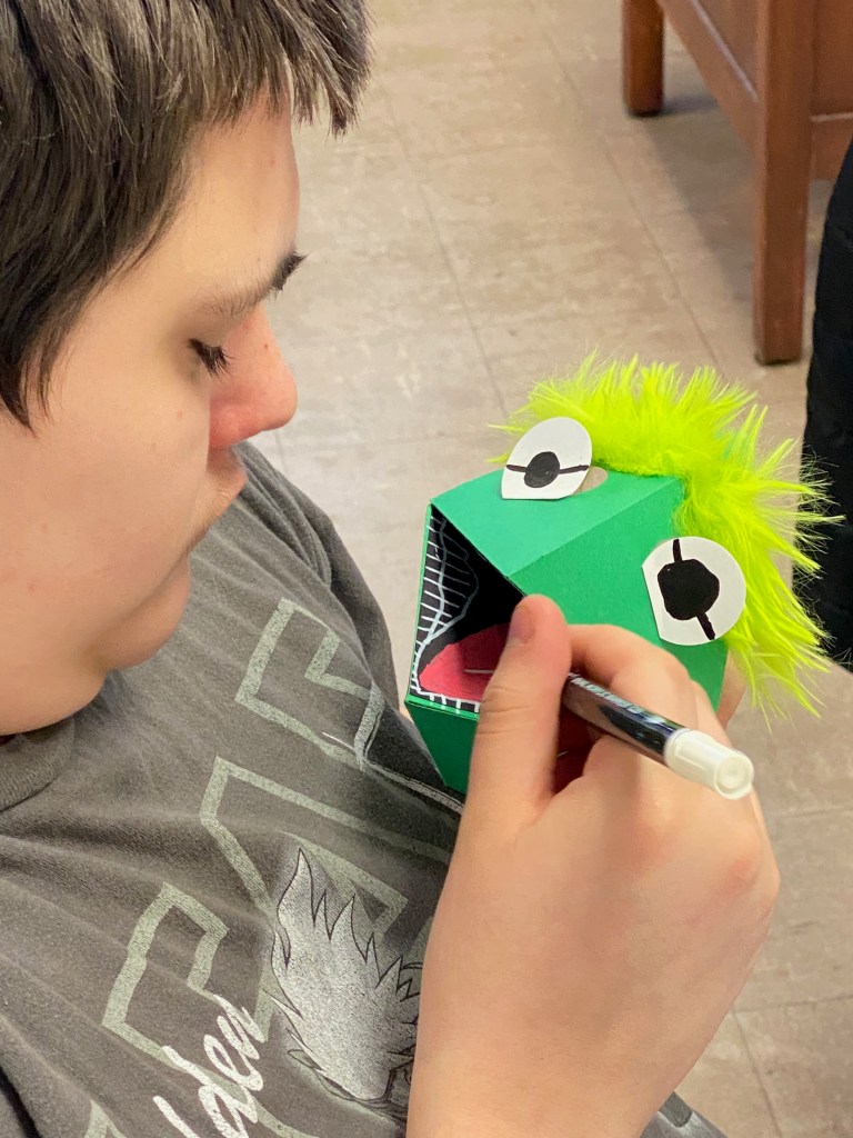 My first puppet workshop build, 1998 with David Pannabecker2025 Sherlock Bones build: life size bloodhound puppet bodySherlock Bones, headCathy Feeman with Sherlock Bones at 2025 Multi-Sensory performanceSherlock Bones at performanceArtist-in-residency: Alternative program, student walking Sherlock Bones around classroomArtist-in-residency: Alternative program puppetry exploration – day 1Artist-in-residency: Alternative program puppetry exploration, day 2 – paper Avatar puppetCardboard/paper mache prototype for artist-in-residencyCardboard/papier-mache prototype for artist-in-residencyArtist-in-residency: Alternative program puppetry exploration, simplified cardboard eagleArtist-in-residency: Alternative program puppetry exploration, cardboard eagle (no papier-mache body)Artist-in-residency: Alternative program puppetry exploration, student papier-mache tabletop puppetArtist-in-residency: Alternative program puppetry exploration, shadowArtist-in-residency: Alternative program puppetry exploration, day 3, paper puppets with moving mouthArtist-in-residency: Alternative program puppetry exploration, day 3, paper puppets with moving mouthArtist-in-residency: Alternative program papier-mache tabletop creature prototype using colored duck tapeArtist-in-residency: Alternative program (elementary school) prototype for pool noodle man