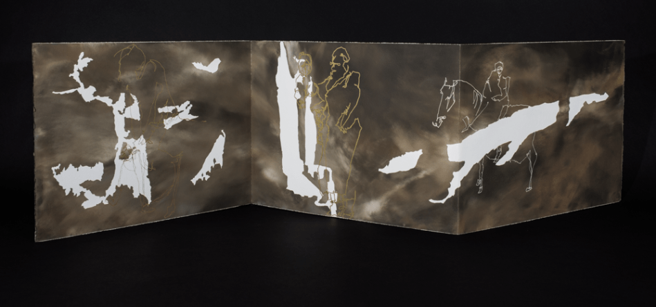 Shadows of an American Dream, 12.5” x 51” (accordion book), oil and wax with pen on Arches oil paper