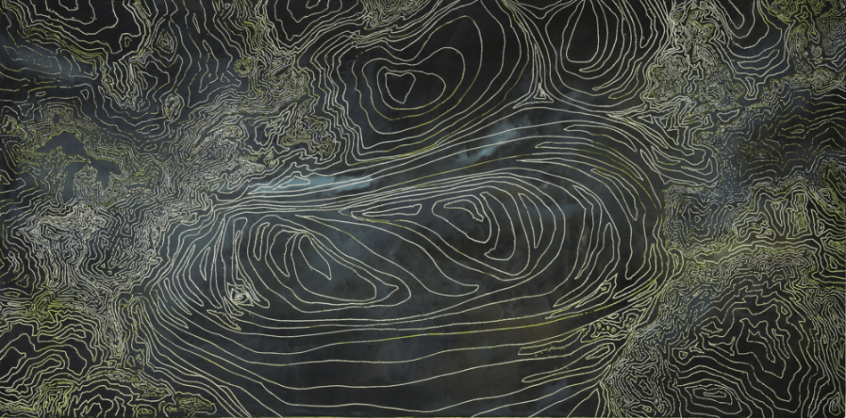 EXCELSIOR/the void between forgetting and the unknown, 24″x48″, oil and wax on birch panel.